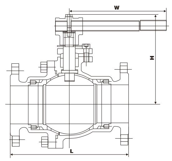 三、Q347F/W/H/Y鑄鋼固定球閥主要外形尺寸:
